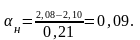 По таблице значений нормального интеграла находим значение αн=0,05 соответствует 199, а оставшиеся 0,04 умножаем на число в строке «дифференция для 0,01», что соответствует 4×40=160 шт. Таким образом, числу, αн=0,09 соответствует нормальный интеграл Ф1=199+160=359 шт. Так как половина кривой распределения (M=2,10) соответствует 10000/2=5000 шт. зерен, то с толщиной 2,08 будет 5000-359=4641 зерен.