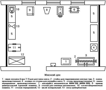Мясной цех предназначен для первичной обработки мяса и приготовления из него полуфабрикатов.