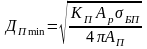 ― минимальную дальность подавления РЛС ОНЦ, Дп min: