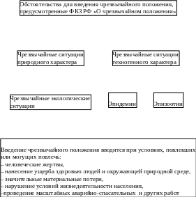 Существенно отметить то, что в соответствии с Федеральным конституционным законом России «О чрезвычайном положении» «Чрезвычайное положение означает особый правовой режим деятельности органов государственной власти, органов местного самоуправления, организаций независимо от форм собственности, их должностных лиц, общественных объединений, допускающий установленные законом отдельные ограничения прав и свобод граждан, прав организаций и общественных объединений, а так же возложение на них дополнительных обязанностей».