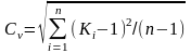Коэффициент вариации CV характеризует колебания годовых значений стока относительно их средней величины. Он является безразмерной характеристикой изменчивости годового стока, удобной для сравнения нескольких рядов наблюдений, различающихся своими средними значениями. При выражении отдельных членов ряда в безразмерных модульных коэффициентах Ki коэффициент вариации определяется по формуле