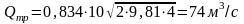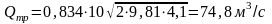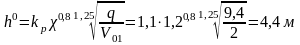 kр=1,1 – коэффициент, зависящий от условий схода потока с рисбермы.