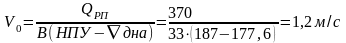 V01=2 м/с – допускаемая неразмывающая скорость для засыпки ковша (галька крупностью 30÷100 мм);