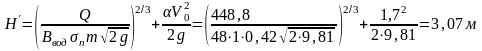 Высота подтопления hп= hНБ –dв.ст.=5,1–2,43=2,67 м, коэффициент подтопления: σп=0,9