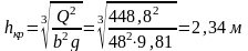 | Q м3/с | hc, м | hкр, м | h'', м | hНБ, м | h''-hНБ, м |
