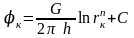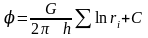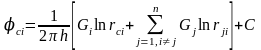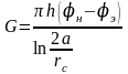 где G - массовый дебит любой скважины батареи, rj - расстояния от некоторой точки пласта до всех n скважин; h - толщина пласта.