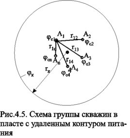 4.1.2 Приток к группе скважин с удаленным контуром питания