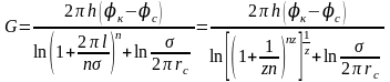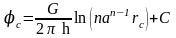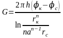 Формула (4.25) справедлива при любом целом n. В частности, при n=1 имеем выражение типа формулы Дюпюи для определения дебита при плоскорадиальном потоке: