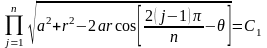 Рассмотрим поле течения в области действия круговой батареи, т.е. построим семейства линий тока и изобар. Уравнение изобар получаем из (4.3) путём представления радиусов rj в полярной системе координат (рис. 4.8)