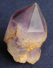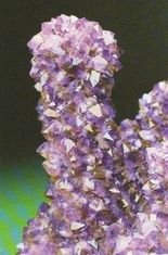 ). Цвет розовато-сиреневый, красно-лиловый, фиалковый. Сингония тригональная. Блеск стеклянный. Твердость 7. Излом раковистый. Наиболее красивые аметисты добывают в Шри-Ланке и в Бразилии. Название «аметистос», в переводе с греческого «непьяный», связывают с античными легендами о его способности предохранять своего владельца от опьянения. Об аметисте сложены многочисленные легенды. Так, в древнегреческих легендах рассказывается о нимфе Аметис, которая отвергла любовь пьяного бога Диониса. Нимфа попросила защиты у богини Артемиды, и та превратила ее в белокаменную статую. Пытаясь оживить возлюбленную, Дионис окропил ее виноградным соком, но статуя так и не ожила, лишь стала багряно – фиолетовой.