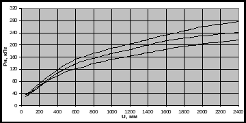 Нормативные нагрузки на незамкнутую крепь определяют по графикам рис в зависимости от смещений пород U и ширины выработки в проходке. Если свойства пород в боках выработки различны, то ожидаемые смещения U и определяемые по смещениям нормативные нагрузки боковые нагрузки также будут отличаться друг от друга. В этом случае для дальнейших расчетов принимают усредненное значение нормативной нагрузки со стороны боков и нормативную нагрузку со стороны почвы.