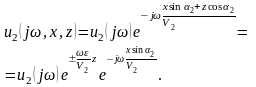 Встретившись с этой неожиданной трансформацией косинуса, мы, из осторожности, записали оба возможных знака (±) корня. Установим, какой из них имеет физический смысл. Для этого вспомним описание проходящей волны (в волновой аргумент которой и входит