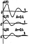 Для выбранных параметров разреза на рис.9 приведен единый график А (α) и В (α) = 1 + А (α), снабженный двумя шкалами оси ординат со смещенными на единицу нулями. В нижней части рисунка изображены схематические импульсоиды падающей волны u (t) и вторичных волн - отраженной