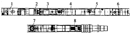 Рис. 9. Автономный многоточечный фотоинклинометр МТ-1-40 конструкции ВИТР.1 – чувствительный элемент; 2 – фотокамера; 3 – механизм перемотки фотопленки; 4 – программный блок; 5 – электромагнит; 6 – датчик ускорений; 7 – датчик временных интервалов; 8 – блок питания