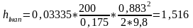 2. Для выбранного стандартного диаметра уточняем скорость в трубопроводе – фактическая скорость Vф=0,883 м/с