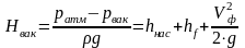 Фактический вакуум определяется с помощью уравнения Бернулли: