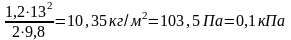 Принимаем γ=1,2кг/м3;g=9,8м/с2.