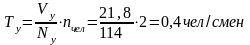 -время на замену одной вагонетки( 1-3мин в зависимости от средства обмена вагонеток);