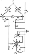 пропорционально азимуту φ. При измерении угла стрелка указателя угла отклонения, жестко скрепленная с отвесом, переместится на дугу δ и закоротит реохорд. Сопротивление незакороченного участка реохорда