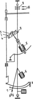При изменении азимута магнитная стрелка пружинными контактами 4 закорачивает часть реохорда. Сопротивление незамкнутой части