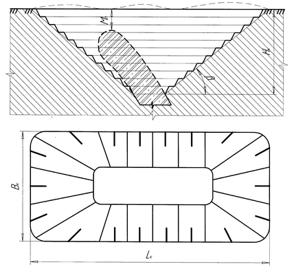 В данном работе проектируется карьер с размерами по длине Lк = 1000 м, по ширине Вк = 460 м. По условию производственная мощность карьера по полезному ископаемому составляет Qпи = 1300 тыс. т/год, по горной массе