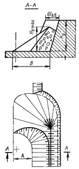 В – ширина развала пород;