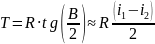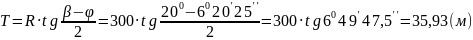 Отрезки касательных от точки ВУ до точки НК и КК называются тангенсами – Т и определяются по формуле: