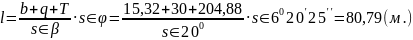 =6020’25’’; в=15,32 м; R=300 м; q=30 м; β=200(по карте).