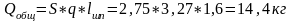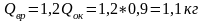 Qок=Qвс= Кот*m=5*0,2=1,0кг