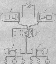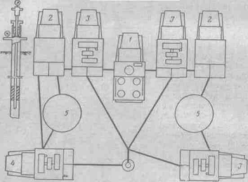 4 — вспомогательный агрегат; 5 — емкость для рабочих жидкостей