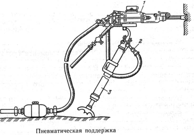 Пневматическая поддержка 1 типа П-2 предназначена для создания усилия подачи при бурении шпуров ручными пневматическими перфораторами и поддержки их на определённой высоте.