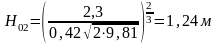 h02=h0min+0,25 (h0max-h0min)=0,84+0,25 (1,37–0,84)=0,97 м