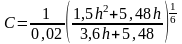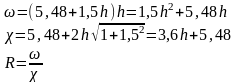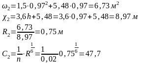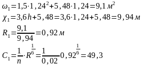 h=0,84 м ω=1,5h2+5,48h=5,66м2 R=0,67 м.