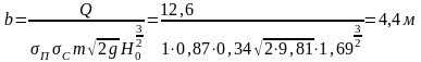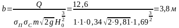 h=1,37 м b=4h=5,48 м ω=5,5h2=10,32 м2.