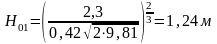 h01=h0max-0,25 (h0max-h0min)=1,37–0,25 (1,37–0,84)=1,24 м