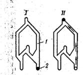 Его отличительная особенность состоит в том, что кроме ограниченного числа открытых и закрытых периодов он позволяет осуществлять дистанционную регистрацию давления всего процесса испытания. Многократное повторение открытых и закрытых периодов испытания, иначе говоря многоцикловость испытаний, осуществляется специальным устройством, состоящим из фигурного паза 1 и пальца 2. Фигурный паз 1-ной, а палец 2 находится втулке, расположенной внутри кожуха. Шток с фигурным пазом 1 проходит через втулку с пальцем 2 и кожух. I-положение, соответствующее спуску и подъему инструмента, а также переходу от закрытого периода к открытому; II - кратковременный открытый период испытания; III - переход от открытого к закрытому периоду испытаний; IV - закрытый период испытаний.