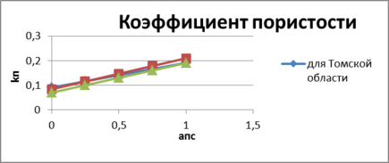 Для зависимости Кп – αпс можно сделать следующие выводы. Получившиеся при построении графики, близки по своим значениям. Однако график, приведенный для месторождения, расположен ниже других. По месторождению пористость глин наибольшая, на что указывает коэффициент «b» в аналитическом выражении, чувствительность коэффициента пористости к глинистости – средняя (на что указывает средний угол наклона кривой, а также коэффициент «а» в уравнении).
