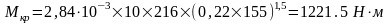 Требуемое осевое усилие на долото диаметром D=216 мм для разрушения породы крепостью ƒ=12: