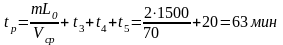 где n2 – количество одновременно опрокидываемых вагонеток; tc – период одного опрокидывания (по данным хронометражных наблюдений), с.
