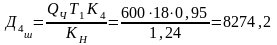 где ДШ – добыча по шахте, т; K1 – коэффициент, учитывающий перевозку породы, материалов, K1 = 1,2–1,25; K2 – коэффициент, учитывающий перевозку сверхплановой добычи, K2 = 1 -1,25; K3 – коэффициент, учитывающий перевозку людей, K3 = 1,2; tР – продолжительность одного рейса, мин.