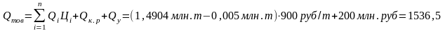 где n – номенклатура продукции; - объем продукции по i-тому виду наименования в натуральном выражении; - затраты на капитальный ремонт и капитальное строительство, руб.; - стоимость производственных услуг сторонним организациям.