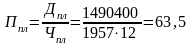 Пб = 63,7 т/ чел. в месяц – производительность одного работающего ППП за месяц.