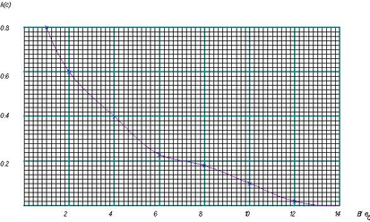 По горизонтальной оси откладываем отношение , а по вертикальной оси отложим Kc, который будет определен, для чего пусть ширина выработки в свету B = 2,7, а bб = 0,5, тогда