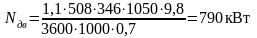Таким чином, знаючи потужність двигуна, приймається найближчий більший по потужності двигун, частота обертання якого збігається із частотою обертання насоса. Приймаємо двигун ВАО630M4. Номінальна потужність - 800 кВт, напруга - 6000 У, КПД - 95%, синхронна частота обертання - 1500 про/хв.