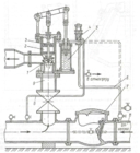 Малюнок 2 - Клапан-Гаситель: 1 - клапан; 2 - циліндр; 3 - поршень; 4 - гідро розподільник; 5 - масляне гальмо; 6 - сполучні імпульсні трубки; 7 - зворотний клапан; 8 - магістральний трубопровід; 9 - відвідна труба
