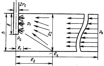Интегрируя последнее уравнение в пределах от rс до Rк, от Рс до Рк получим: