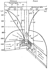 В стволе скважины на пути от забоя до устья в результате затрат энергии на движение снижаются давление и температура. Объемные скорости потока газа в пласте и в стволе скважины по пути движения увеличиваются вследствие расширения газа при снижении давления.