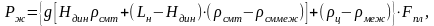 где qштi – вес 1 м штанг данного диаметра в воздухе, Н; Карх=(ρштсм т)/ρшт – коэффициент плавучести штанг; ρшт – плотность материала штанг, кг/м3; ρсм меж, ρсм т – средняя плотность жидкости (смеси), находящейся соответственно в пространстве между обсадной колонной и колонной насосно-компрессорных труб, кг/м; ρмеж – давление газа в этом пространстве на устье скважины, Па.