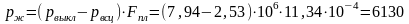 Аналогично определим перепад давления на нагнетательном клапане. Поскольку рвык>р’нас, то Qгвык)=0 и Qкл=Qжнас),