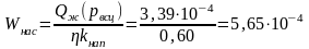 13. Определим подачу насоса Wнас, обеспечивающую запланированный дебит нефти при получившемся коэффициенте наполнения: